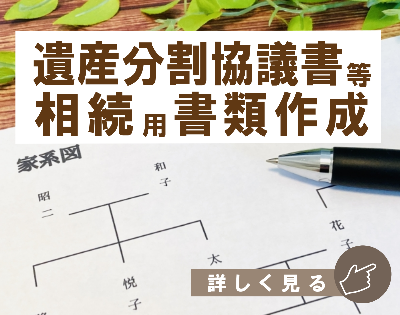 「遺産分割協議書作成」「自筆遺言書の家裁への検認手続」「預貯金等の解約・払戻し手続」