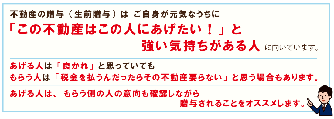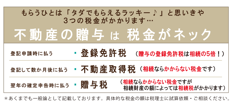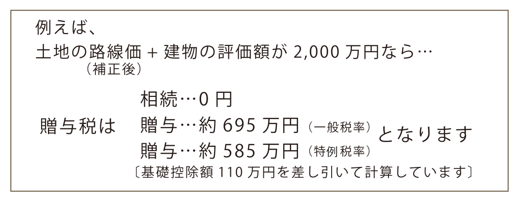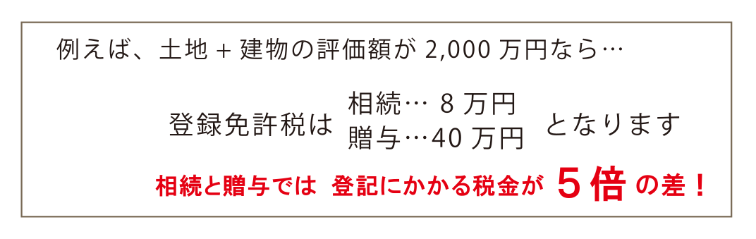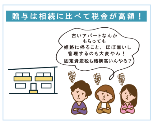 不動産を贈与する場合、相続に比べて税金(贈与税)が高額となります